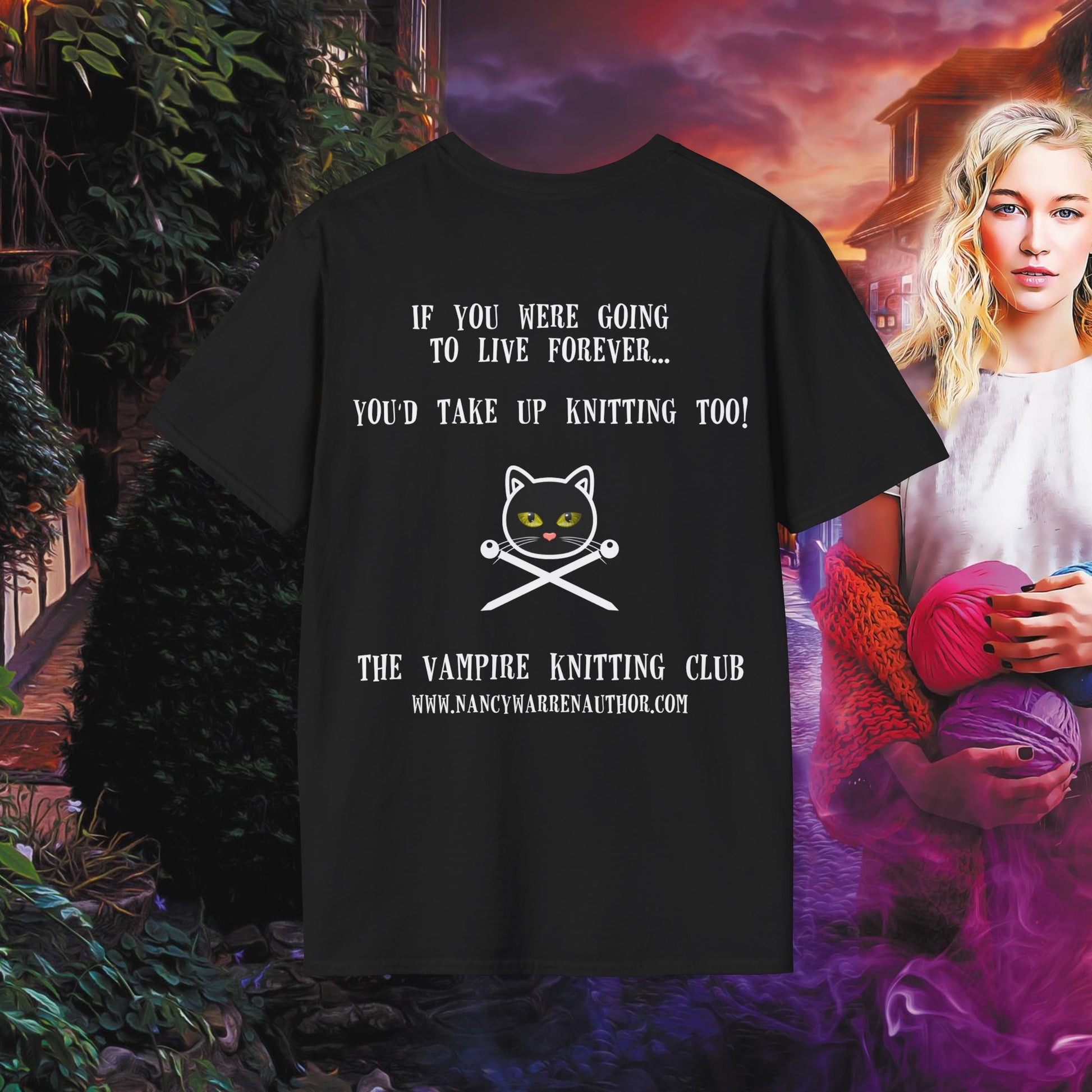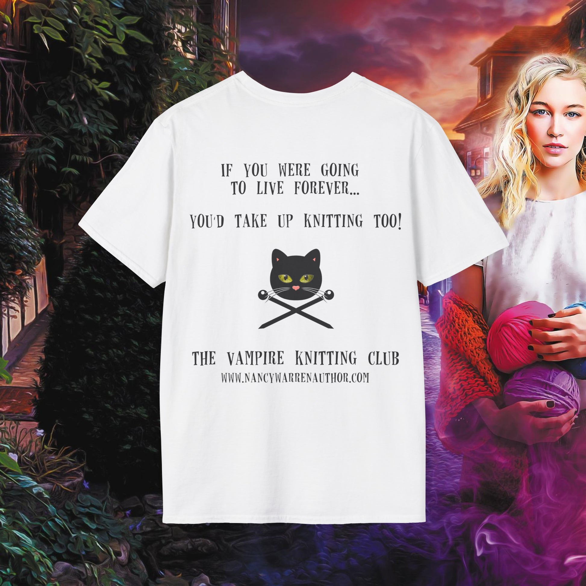 Vampire Knitting Club Unisex T-Shirt: Live forever (Black/White)