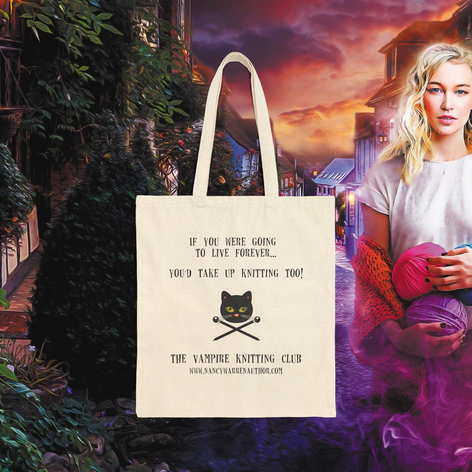 Vampire Knitting Club Cotton Canvas Tote Bag - Natural